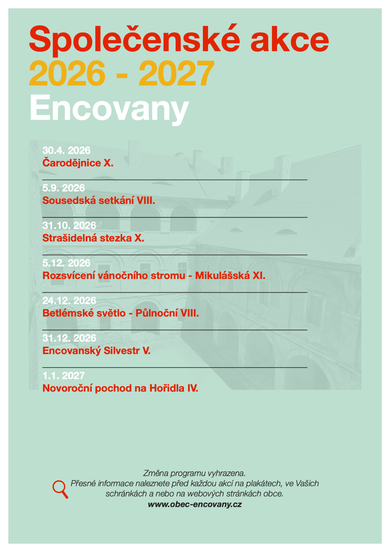 Vítáme vás v naší malebné obci, která se nachází na levém břehu Labe, asi 2 km na severozápad od Polep, kam také katastrálně spadá. Název obce vznikl pravděpodobně zkomolováním sousloví "ve vinici", jak se místu kde Encovany leží, říkalo. Obec Encovany se poprvé připomíná v roce 1269. Tehdy ji držel litoměřický kanovník Jan z Encovan. R. 1335 koupil ves probošt Petr pro chotětovský klášter v západních Čechách a kolem roku 1339 byly přikoupeny i sousední Polepy. V roce 2011 zde bylo evidováno 171 stálých obyvatel. Území obce Encovany skýtá rozlohu 5,34 km². Dominantou obce je barokní zámek který vznikl přestavbou gotické tvrze v šestnáctém století. Po roce 1673 proběhla částečná barokní přestavba a další drobné úpravy probíhaly v osmnáctém a devatenáctém století. Zámek je chráněn jako kulturní památka.